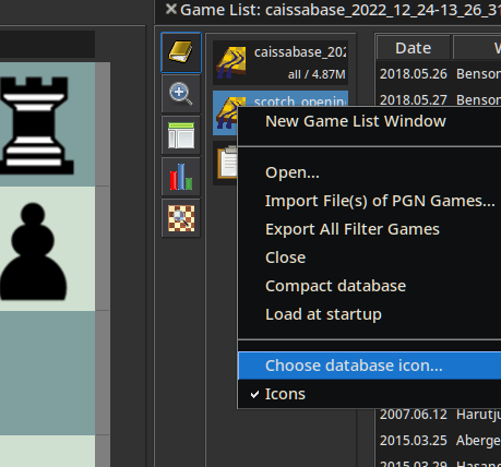 Click on book icon again in the database window, make sure your new database is selected, and then right click on it and select “Choose database icon…”. Pick either “openings for white”, “openings for black”, or “openings for either”.
