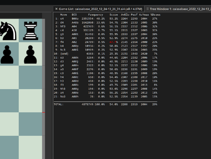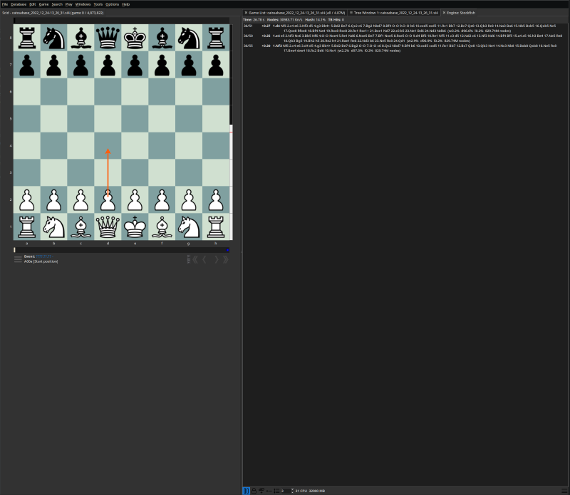 and the engine I’ll be using are Caissabase and Stockfish, respectively.