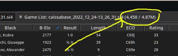 If you haven’t already done so go ahead and unzip the Caissabase_2022_12_24.zip file first. Then, load in the database as a tree: File–>Open base as tree...