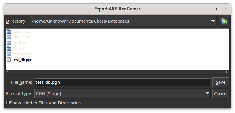Click on the book icon and select the Caissabase if it’s not already selected then right click and select “export all filter games”. Name the file something convenient to remember like the name of the opening.