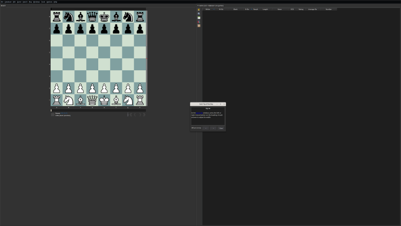 After the repertoire database is loaded this little window will pop up. Don’t abort. Just minimize it if it’s in the way.